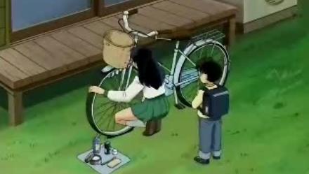 Mivel Kagome biciklije tnkrement a kzpkori Japnban ezrt a szomszdoktl kapott Kagome egy j biciklit.. nem volt tl j llapotban de Kagome iskola eltt szpen rendbetette.. ahogy ksz lett Inuyasha az gbl pont Kagome biciklijn landolt..:D